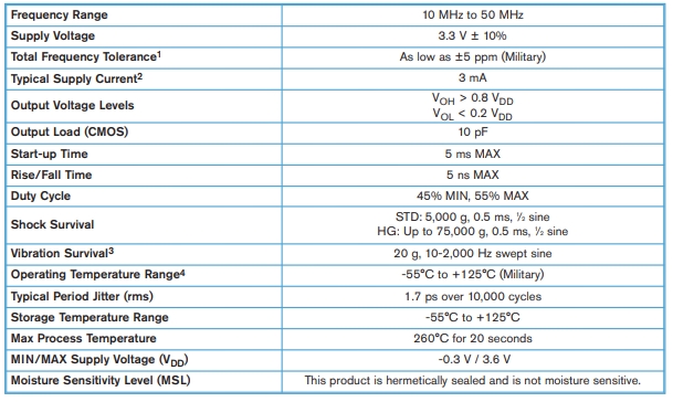 頻率穩(wěn)定度:-40℃~85℃工況下±30ppm~±100ppm可選,-55℃~125℃工況下±50ppm~±100ppm可選,第一年老化±5ppm(根據(jù)頻率調(diào)整);