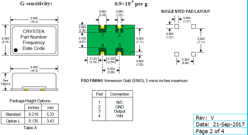 | C3290-4.000 | Crystek晶振 | C3290 | XO | 4MHz | HCMOS,TTL | 5V | ±100ppm |