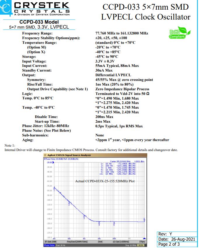 更多>>Crystek有源晶體,CCPD-033振蕩器,CCPD-033X-25-150.000晶振