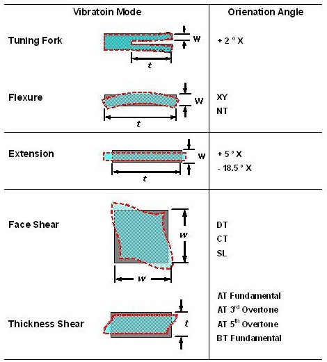 石英晶振的切割角度與振動(dòng)模態(tài)