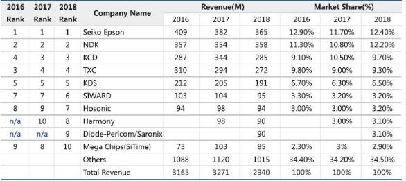巨頭NDK公司有源業(yè)務(wù)在18及19財年連續(xù)下滑,KDS業(yè)務(wù)收入也進(jìn)入負(fù)增長階段.部分小廠商關(guān)閉生產(chǎn)線進(jìn)行整合,實力較強的龍頭企業(yè)則專注高附加值產(chǎn)品,市場集中度進(jìn)一步提升.例如,以京瓷為代表的部分日系晶振廠甚至剝離2520、2016尺寸溫補晶振產(chǎn)線,轉(zhuǎn)而主攻毛利率更高的1612尺寸產(chǎn)品.