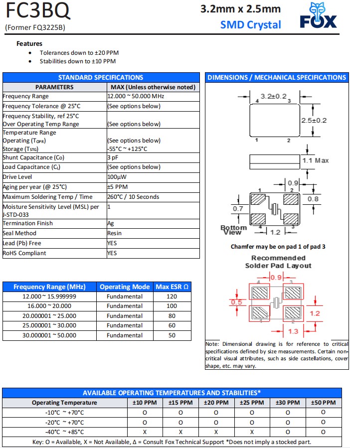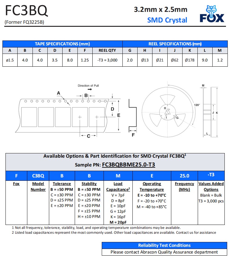 FC3BQBBME25.0-T1 | Fox晶振 | FC3BQ | 25 MHz | ±50ppm |