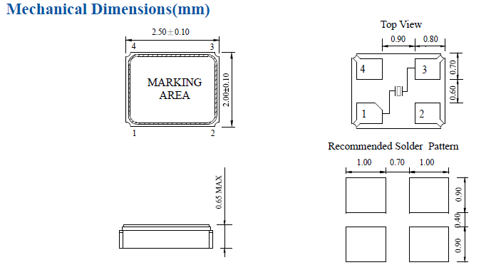 臺灣鴻星晶振,E2SB10.0000F10E12,6G相關(guān)設(shè)備晶振尺寸圖