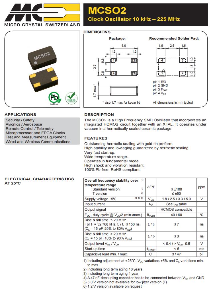 OV-0100-C7-100.000kHz-50PPM-TA-QC | Micro Crystal | 標(biāo)準(zhǔn)時(shí)鐘振蕩器 100.0 kHz +/-50 PPM -40/+85C |
