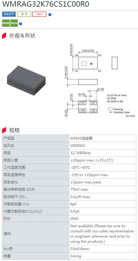 更多>>進(jìn)口村田晶振,WMRAG系列晶振,WMRAG32K76CS1C00R0晶振