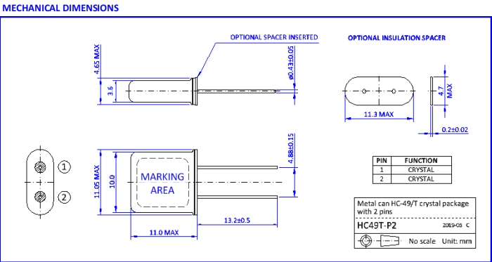 NKG晶振|01-CR1-04-25M000-T20-2030M-EXT|HC-49U插件晶振尺寸圖