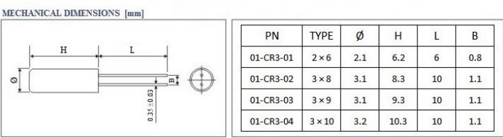 NKG晶振|01-CR3-02-11M288-T16-2050E-EXT|3×8圓柱晶振尺寸圖