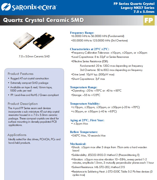 | FP0730013 | Diodes晶振 | FP | 7.3728 MHz | ±50ppm | ±50ppm | 20pF |