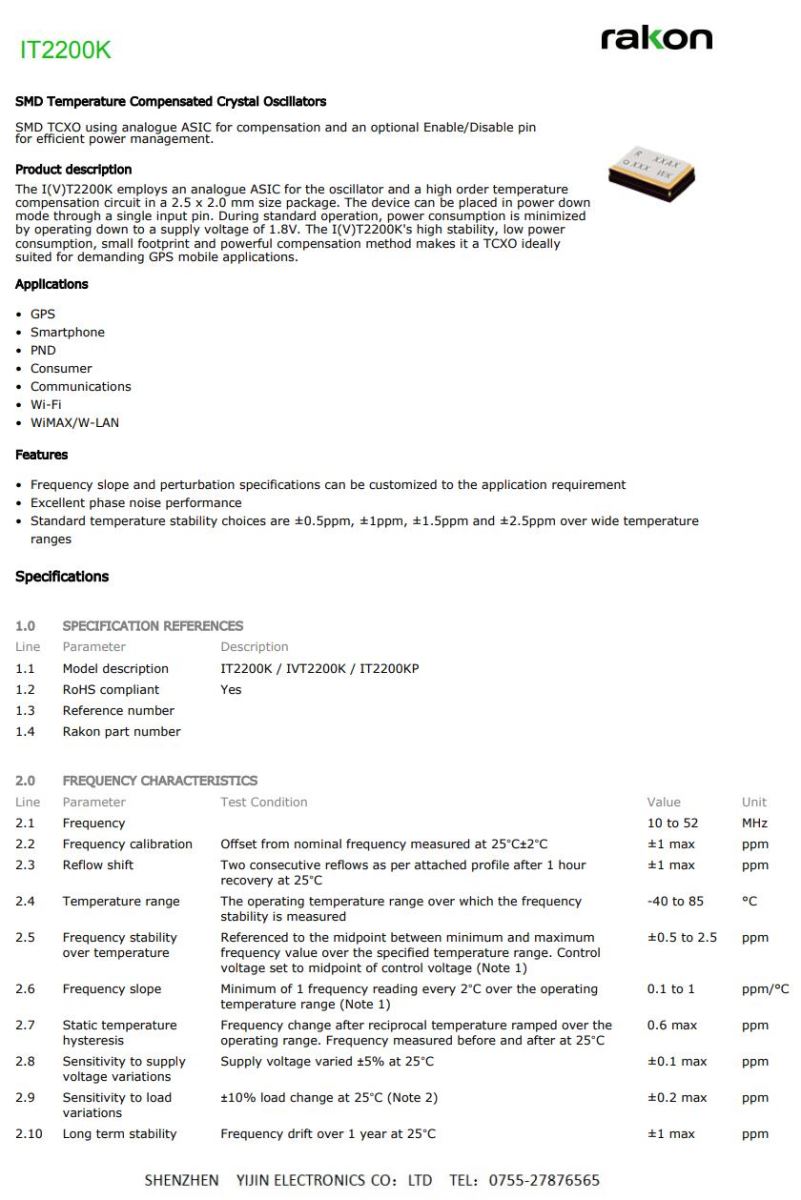 更多>>美國瑞康晶振,IT2200K晶振,2520溫補晶振