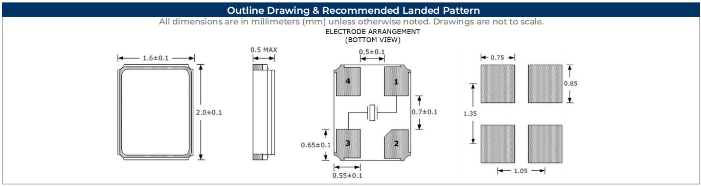 SXT21410AA27-16.000M | 2.0X1.6 SMD (4 PAD) CRYSTAL | 10pF | ±50ppm | 16.000M |