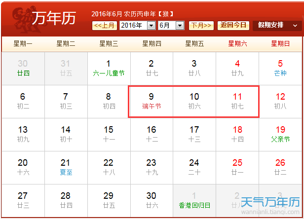 6月9日至6月11日,共計3天.6月12日(星期日)正常上班.