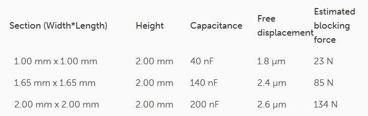 多個新產(chǎn)品已經(jīng)開發(fā)成功。以下是使用 CTS 的高應(yīng)變 NCE51F 材料的板式執(zhí)行器的一些示例,額定電壓為 45 V。我們有能力為特定應(yīng)用創(chuàng)建定制產(chǎn)品。